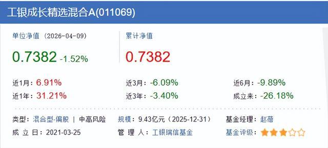 至于她那只工银成长精选夹杂A,更是让东谈主说来话长。这只基金2021年确立到咫尺,累计回撤26.18%,近3年收益-3.40%。