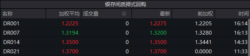 银行间回购定盘利率多量握平。FR001报1.3000%,与前一往改日握平;FR007报1.4100%,跌1.00个基点;FR014报1.4300%,与前一往改日握平。